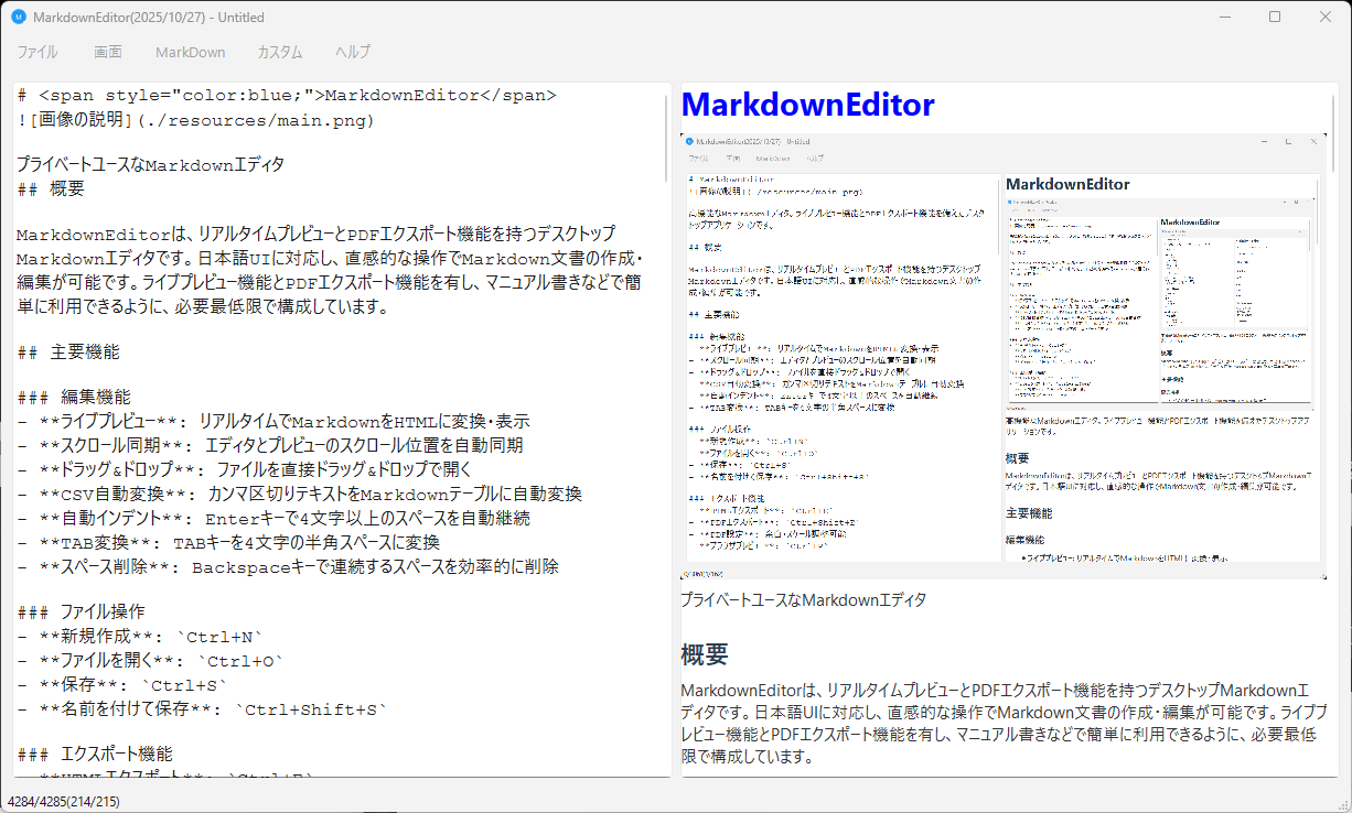シンプルなMarkdownエディタです。使い勝手を一番の目標に、自分用として作成したものの流用ですw