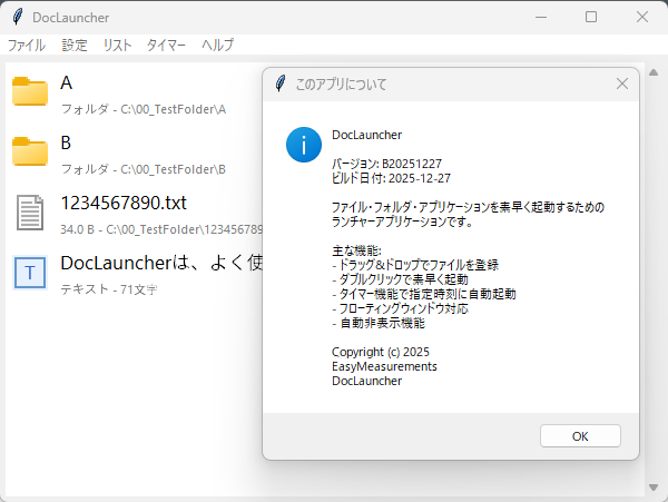 DocLauncher DocLauncherは、よく使うファイル、フォルダ、アプリケーション、テキストを登録し、簡単にアクセスできるランチャーアプリケーションです。作業内容(報告書作成、メール作成など)、プロジェクト毎